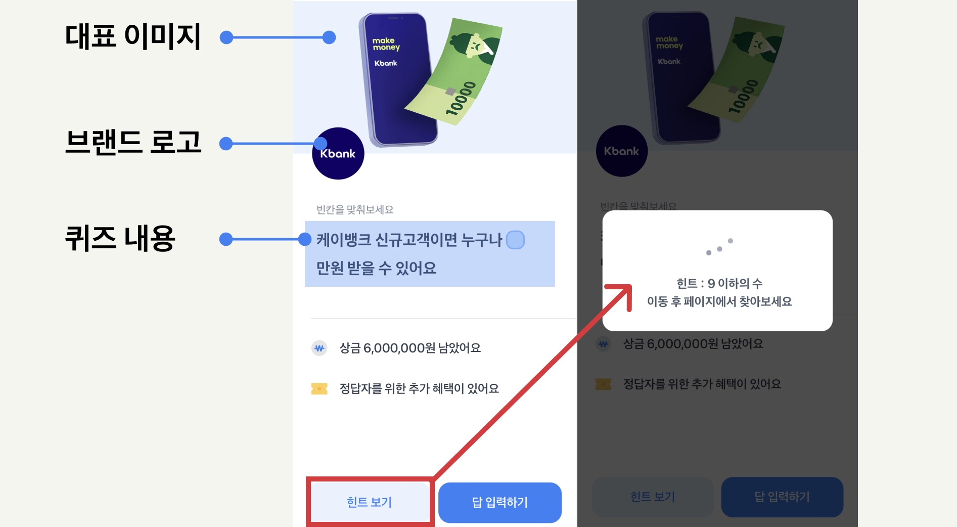 퀴즈의 정답을 찾기 어려울시 유저들의 원활하지 못한 참여로 광고 부스팅 효과가 저하될 수 있다는 점 유의해주세요