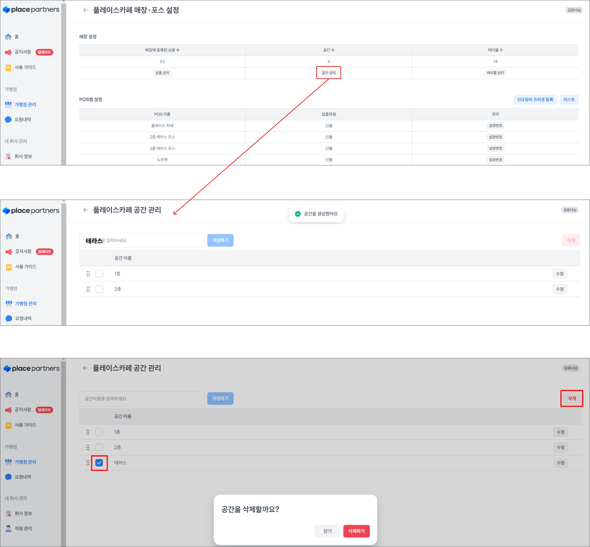 공간 관리를 누르고, 만들 공간을 입력해 저장해주세요.
