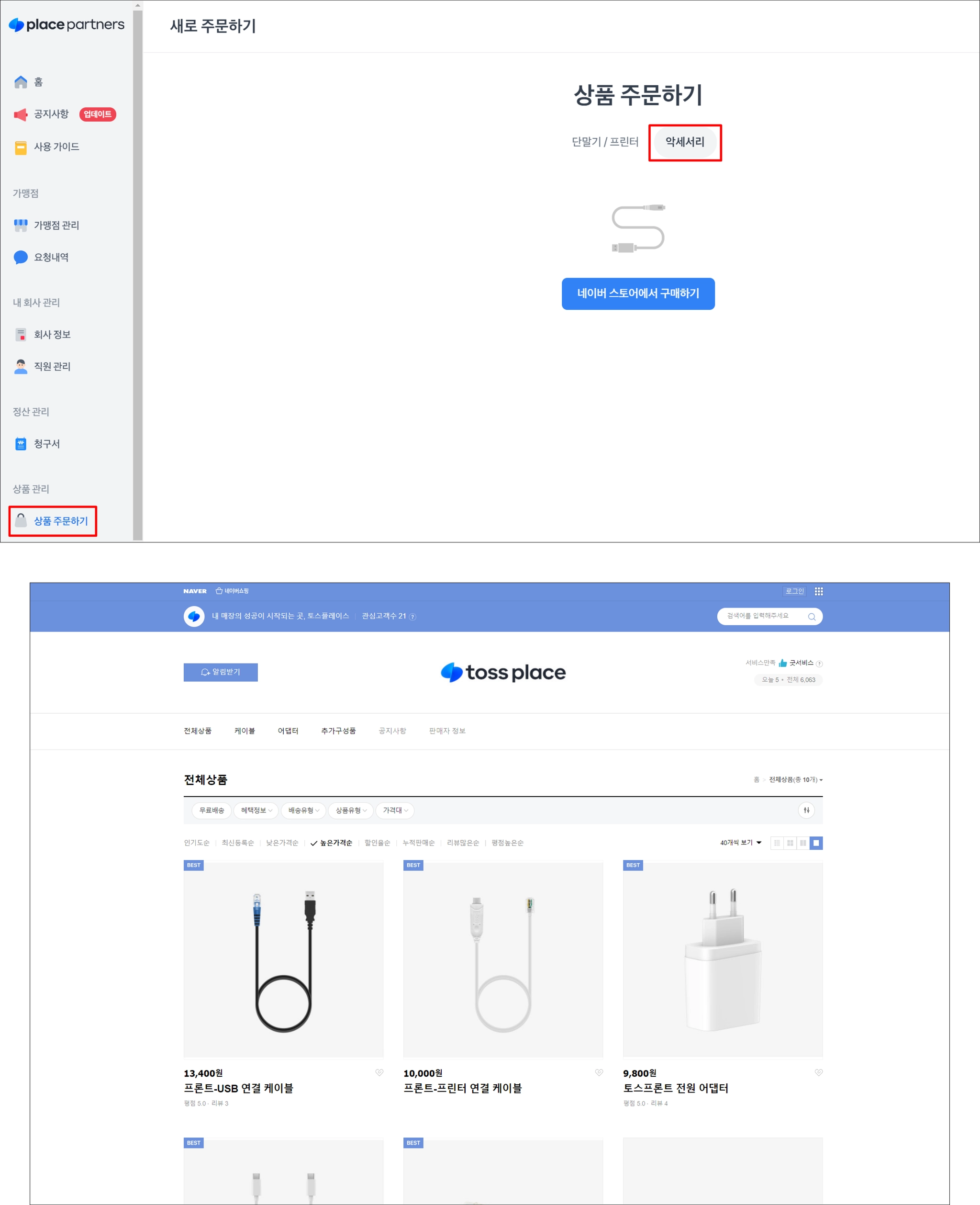 플레이스 파트너스 → 상품 주문하기에서 상품을 주문할 수 있어요.