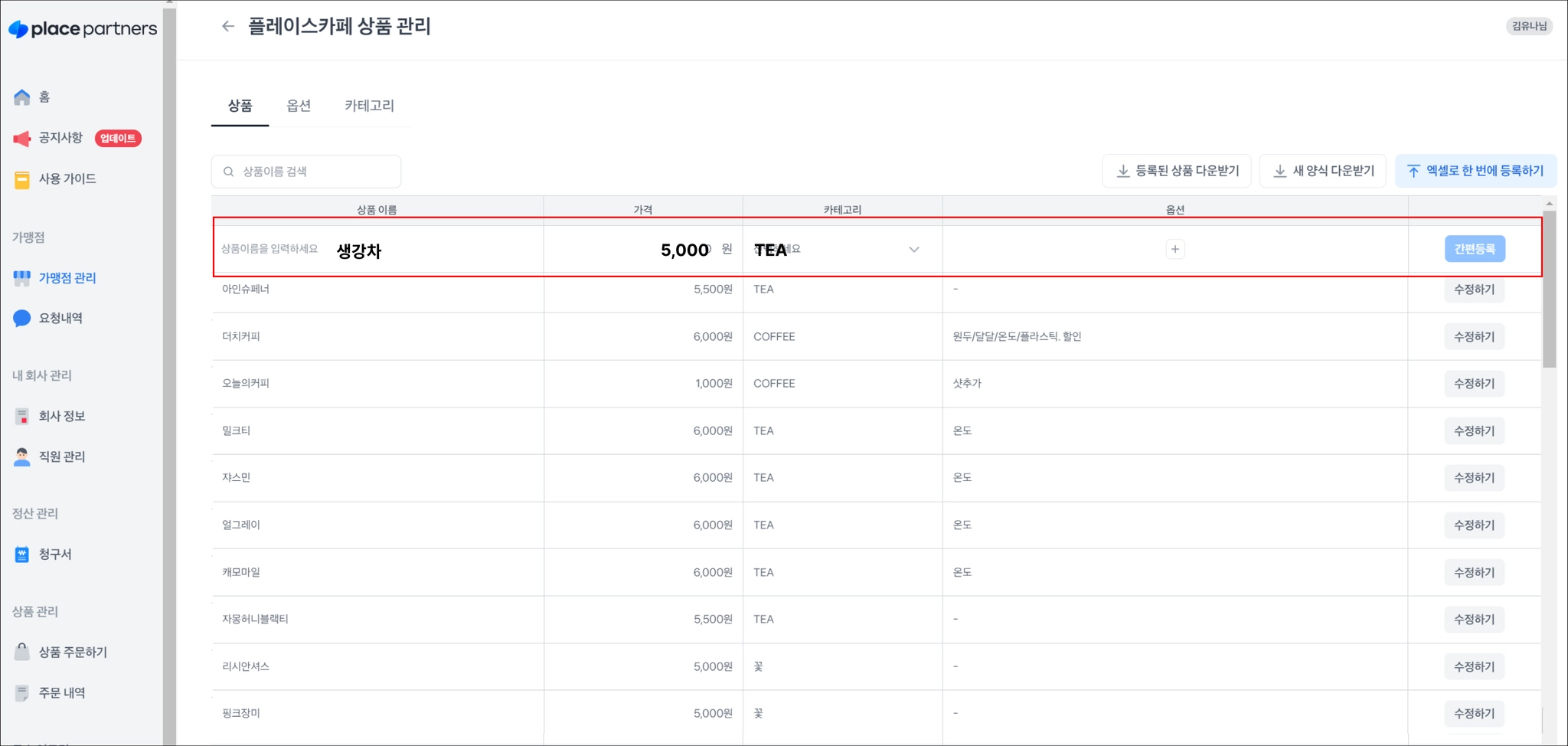 플레이스 파트너스 ASP로 상품 등록부터 후불 매장 테이블 수정, 프린터 추가까지 손쉽게 가능해요!