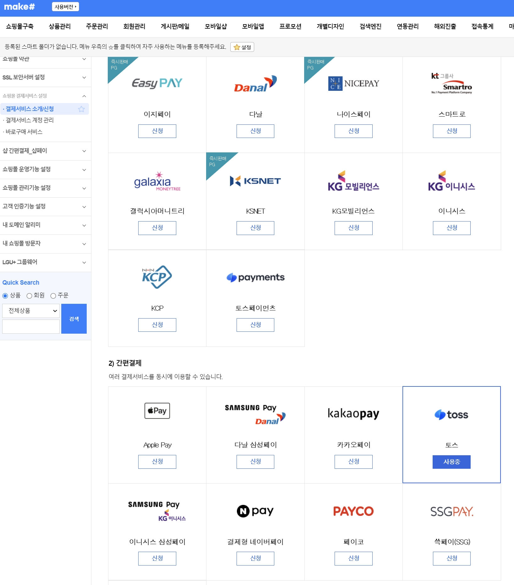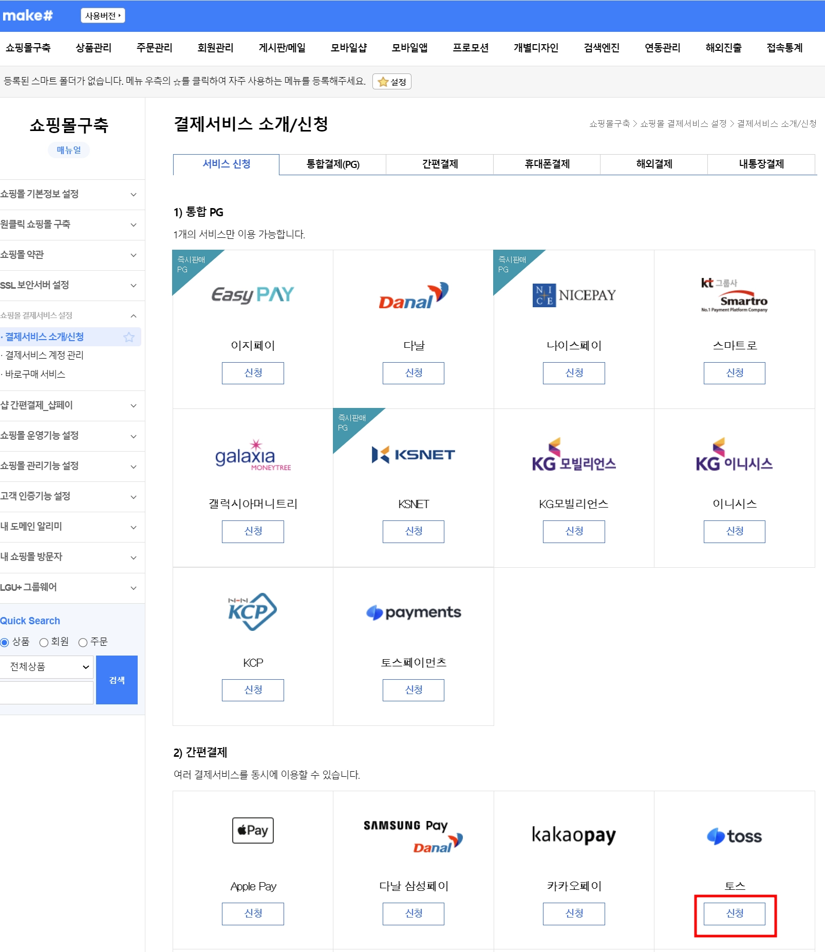 ๊ฒฝ๋ก : ๋ฉ์ดํฌ์ต ๋ก๊ทธ์ธ โ ์ผํ๋ชฐ ๊ตฌ์ถ โ ๊ฒฐ์ ์๋น์ค ์๊ฐ/์ ์ฒญ