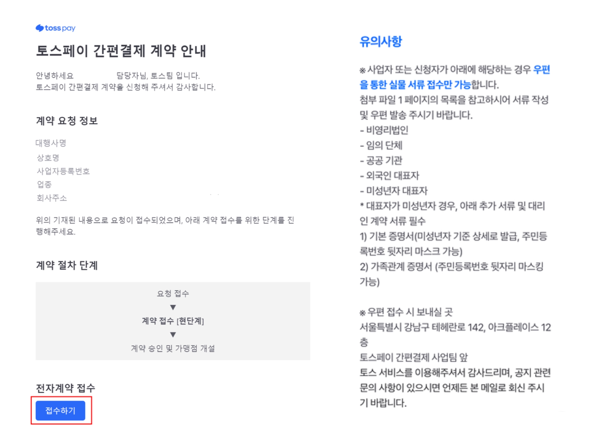 โ [ํ ์คํ์ด ๊ฐํธ๊ฒฐ์ ๊ณ์ฝ ์๋ด] ์ ๋ชฉ์ ๋ฉ์ผ ๋ด [์ ์ํ๊ธฐ] ๋ฅผ ๋๋ฌ ์ ์ํด ์ฃผ์ธ์.