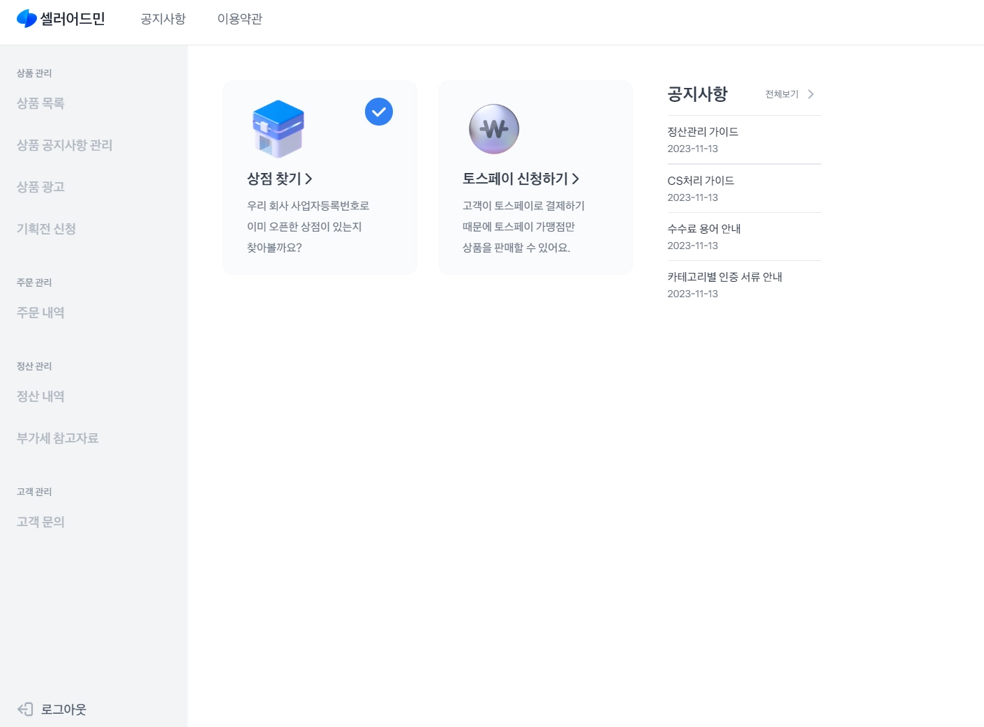 토스페이 가맹 계약이 완료되었는데 우측 메뉴가 비활성화되어있다면, 셀러어드민 채팅 상담을 통해 문의해 주세요. 가맹점 정보 확인 후 도와드릴게요.