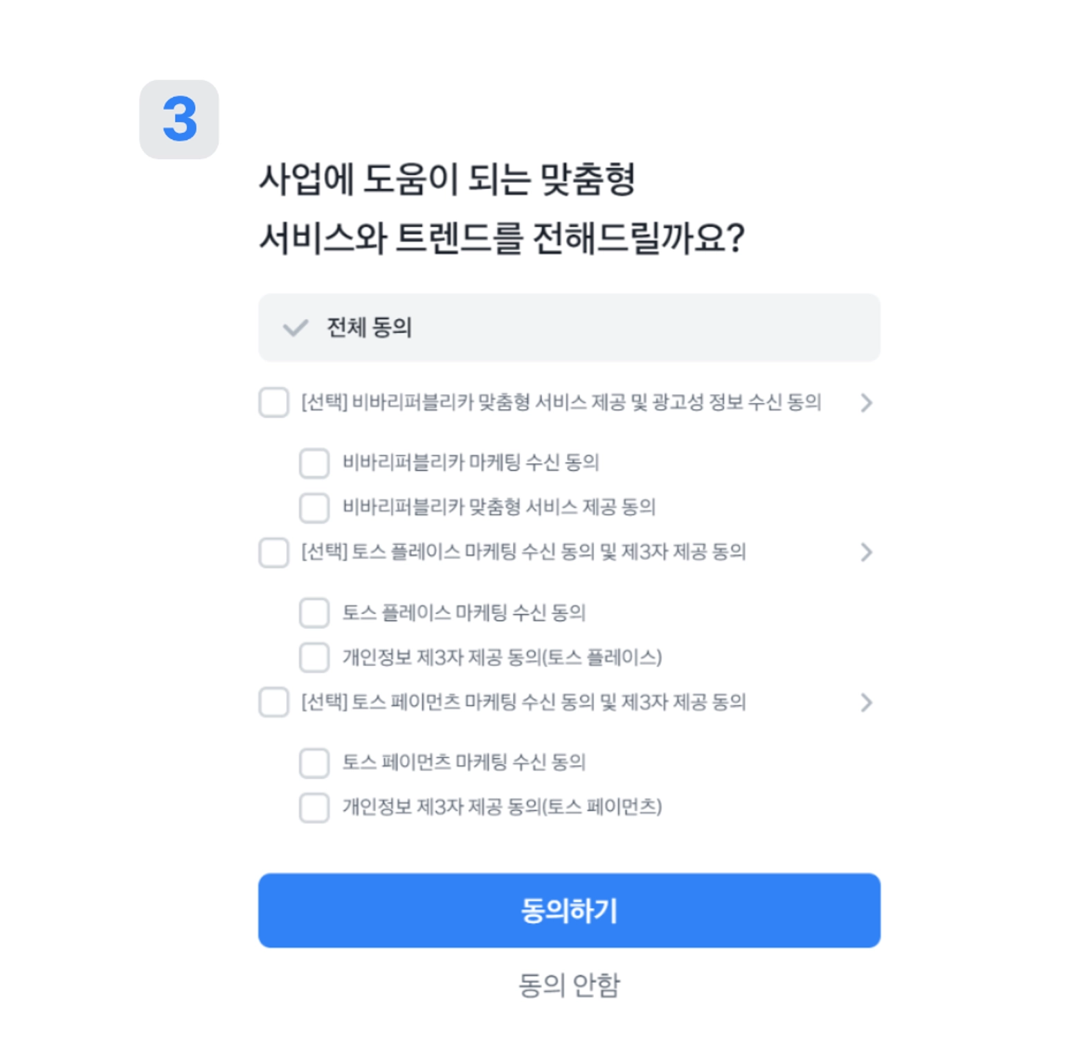 맞춤형 서비스와 트렌드를 전해드리기 위한 동의 항목이에요