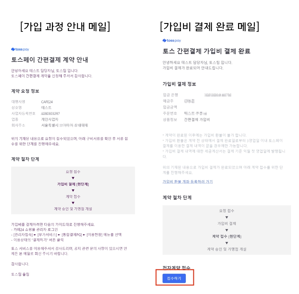 ๊ฒฐ์ ์๋ฃ ํ ์์ ํ ๋ฉ์ผ์์ ์ ์๊ณ์ฝ ์ ์งํํด์ฃผ์ธ์